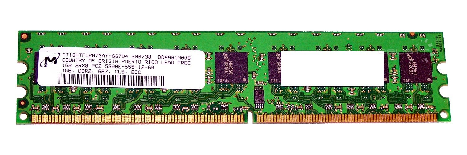 Memoria RAM 1x 1GB Micron ECC UNBUFFERED DDR2 667MHz PC2-5300 UDIMM | MT18HTF12872AY-667D4