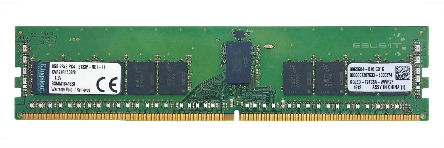 - Kit di memorie RAM 8 GB composto da 1x 8GB 1Rx4 PC4-17000 DDR4 2133MHz 1.2 V ECC REGISTERED | KVR21R15S4/8
