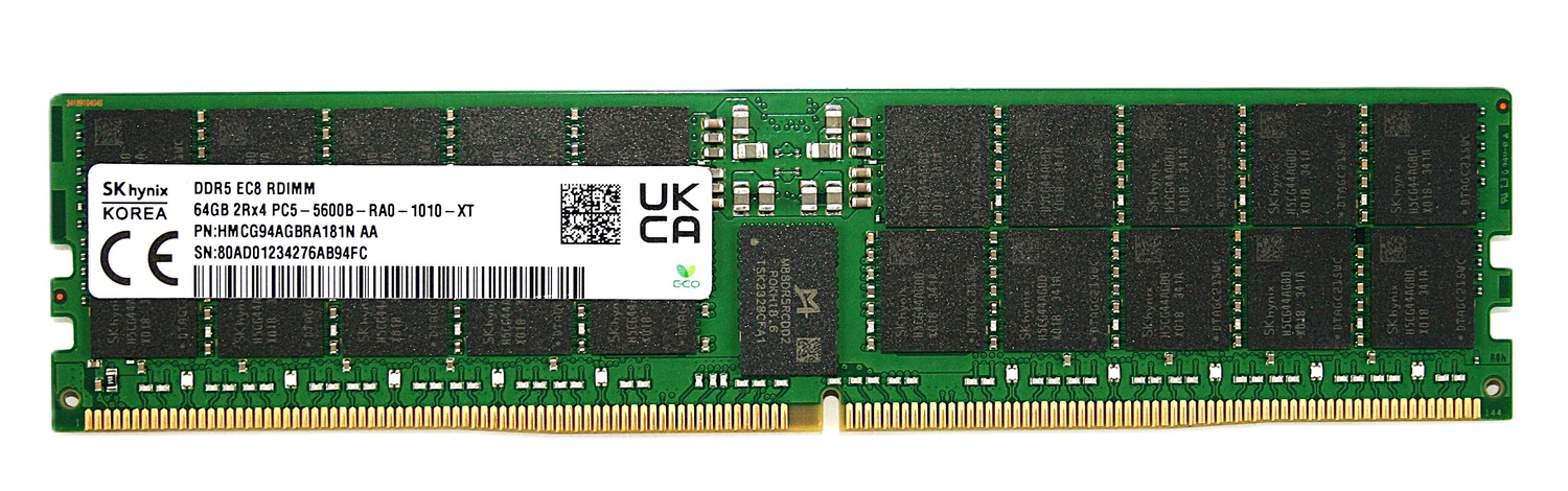 - Kit di memorie RAM 64GB composto da 1x 64GB ECC REGISTERED DDR5 2Rx4 5600MHz PC5-44800 RDIMM | HMCG94AGBRA181N