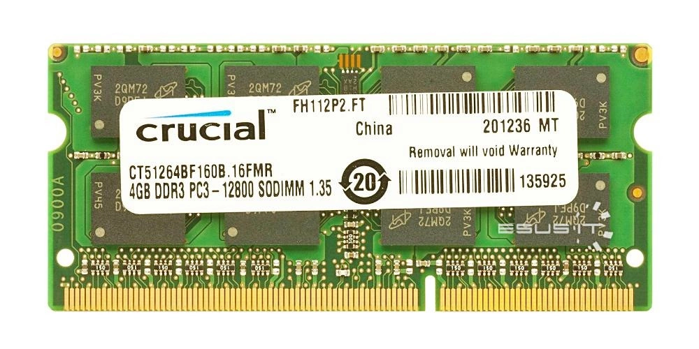 - Kit di memorie RAM 4 GB composto da 1x 4GB SO-DIMM DDR3 1600MHz PC3-12800 | CT51264BF160B