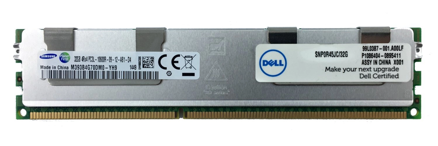- Kit di memoria RAM 32 GB memory upgrade kit dedicated for DELL PowerEdge & Precision Workstation composto da 1x 32GB PC3-10600 DDR3 1333MHz ECC REGISTERED DIMM | DELL P/N: SNP0R45JC/32G | A6994464. ESUS IT gli garantisce al 100%, che il prodotto offerto è
