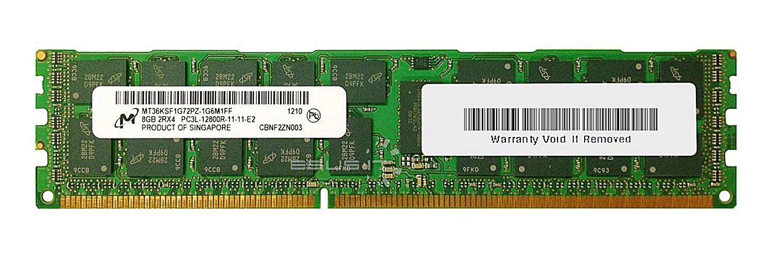 - Kit di memorie RAM 8 GB composto da 1x 8GB 2Rx4 PC3-12800 DDR3 1600MHz 1.35 / 1.5 ECC REGISTERED | MT36KSF1G72PZ-1G6