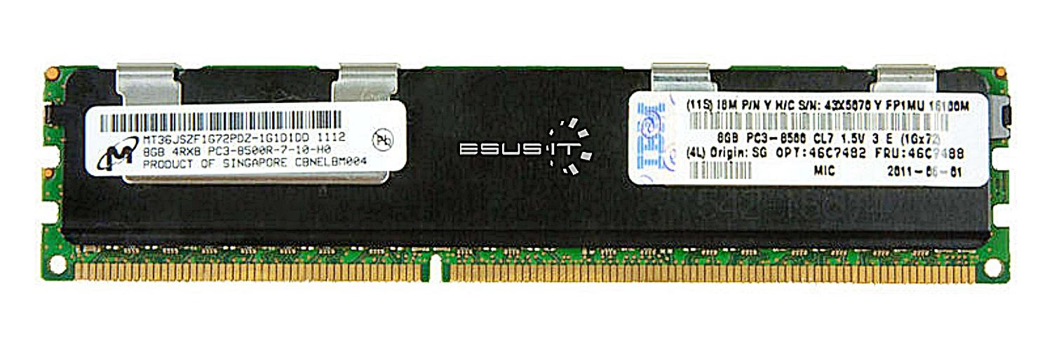 • Kit di memoria RAM 8 GB memory upgrade kit dedicated for IBM ThinkServer & System X composto da 1x 8GB PC3-8500 DDR3 1066MHz ECC REGISTERED DIMM | IBM P/N: 47J0138 | OPT: 49Y1399 | 49Y1417. ESUS IT gli garantisce al 100%, che il prodotto offerto è origina