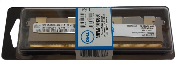 - Kit di memoria RAM 32 GB memory upgrade kit dedicated for DELL PowerEdge & Precision Workstation composto da 1x 32GB PC3-10600 DDR3 1333MHz ECC LOAD REDUCED DIMM | DELL P/N: SNPM9FKFC/32GB | A6222874. ESUS IT gli garantisce al 100%, che il prodotto offert