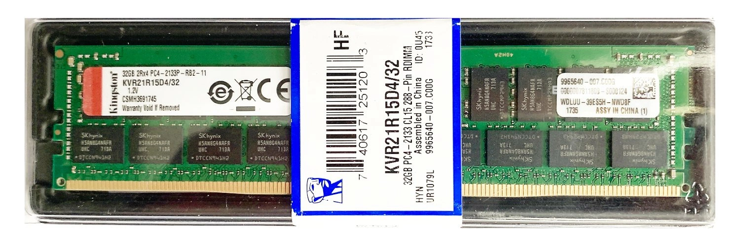 - Kit di memorie RAM 32 GB composto da 1x 32GB PC4-17000 DDR4 2133MHz 1.2 ECC REGISTERED | KVR21R15D4/32