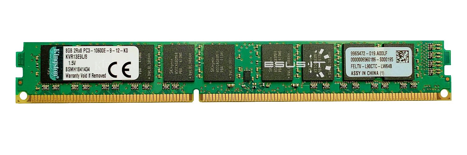 - Kit di memorie RAM 8 GB composto da 1x 8GB 2Rx8 PC3-10600 DDR3 1333MHz 1.5 ECC UNBUFFERED | KVR13E9L/8
