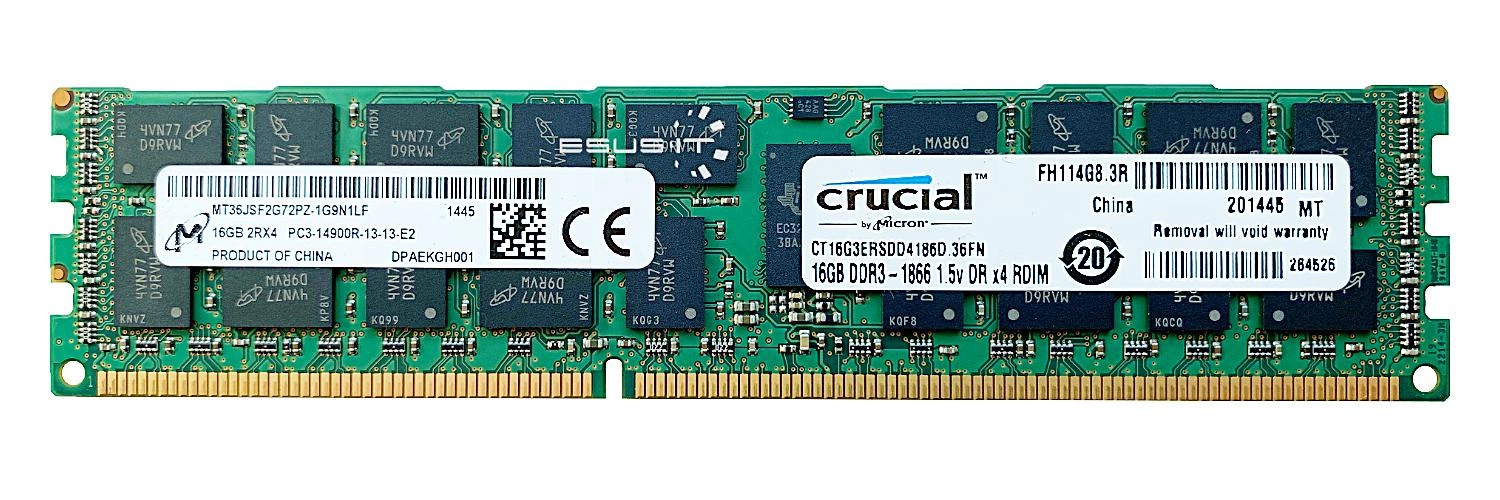- Kit di memorie RAM 16 GB composto da 1x 16GB 2Rx4 PC3-14900 DDR3 1866MHz 1.5 ECC REGISTERED | MT36JSF2G72PZ-1G9