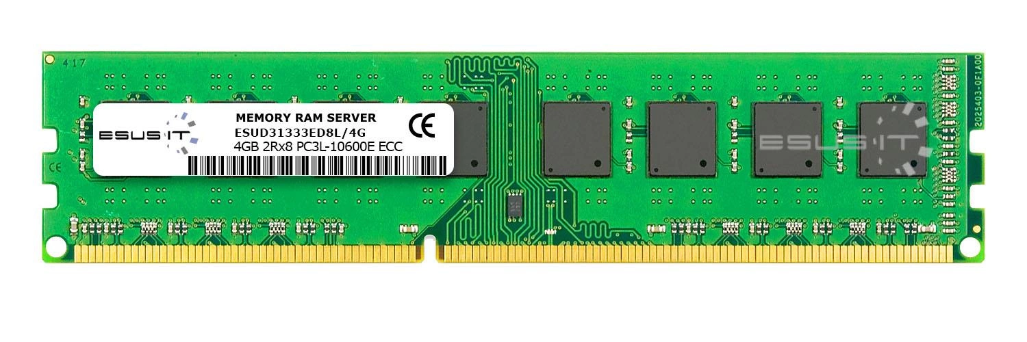 - Kit di memorie RAM 4 GB composto da 1x 4GB 2Rx8 PC3-10600 DDR3 1333MHz 1.35 / 1.5 ECC UNBUFFERED | ESUD31333ED8L/4G