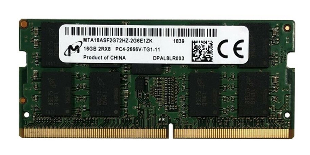 - Kit di 16GB memorie RAM composto da 1x 16GB SO-DIMM DDR4 2666MHZ PC4-21300 | MTA18ASF2G72HZ-2G6