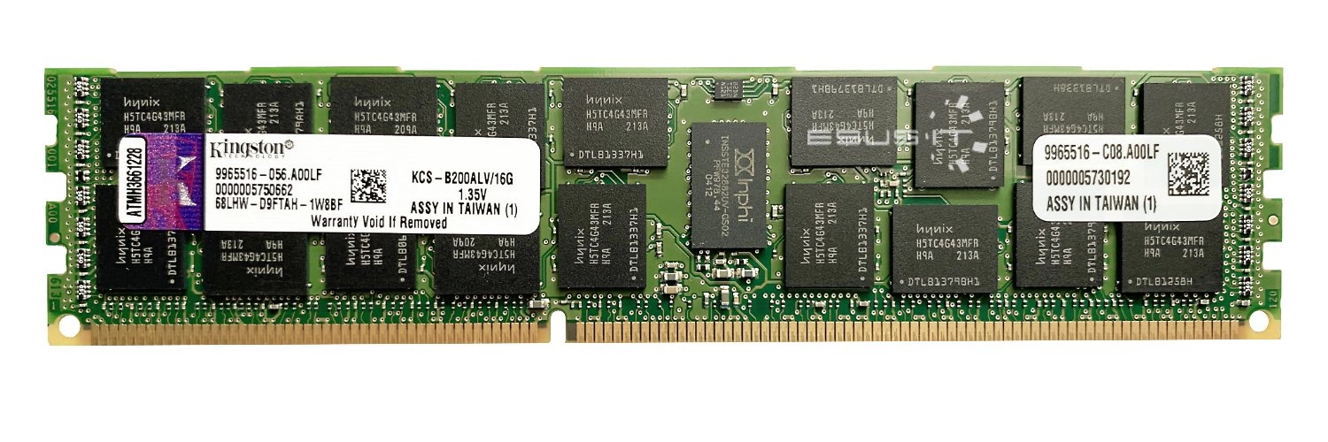 • Kit di memorie RAM 16 GB composto da 1x 16GB 2Rx4 PC3-10600 DDR3 1333MHz 1.35 / 1.5 ECC REGISTERED | KCS-B200ALV/16G