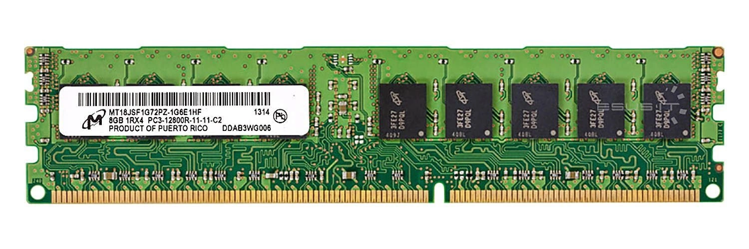 - Kit di memorie RAM 8 GB composto da 1x 8GB PC3-12800 DDR3 1600MHz 1.5 ECC REGISTERED | MT18JSF1G72PZ-1G6