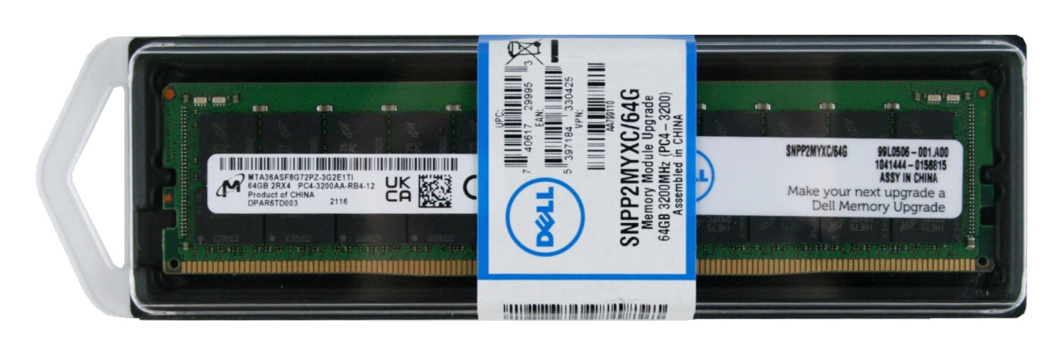 - Kit di memoria RAM 64 GB memory upgrade kit dedicated for DELL PowerEdge & Precision Workstation composto da 1x 64GB 2Rx4 PC4-25600 DDR4 3200MHz ECC REGISTERED DIMM | SNPP2MYXC/64G. ESUS IT gli garantisce al 100%, che il prodotto offerto è originale.