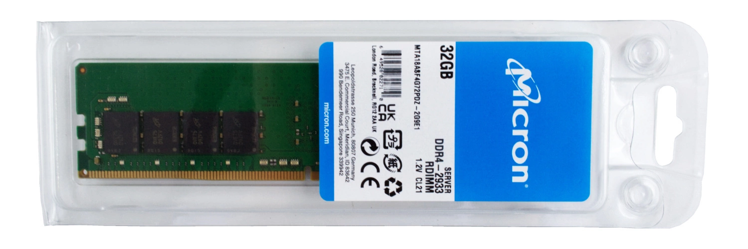 Memoria RAM 1x 32GB Micron ECC REGISTERED DDR4 2Rx8 2933MHz PC4-23400 RDIMM | MTA18ASF4G72PDZ-2G9
