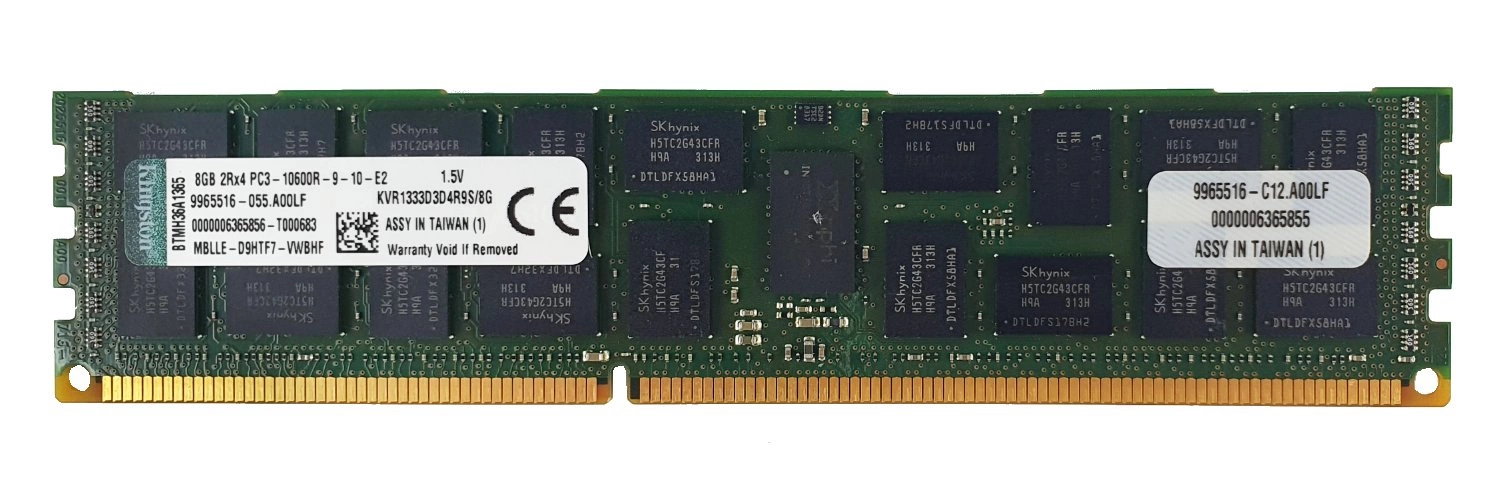- Kit di memorie RAM 8 GB composto da 1x 8GB PC3-10600 DDR3 1333MHz 1.5 ECC REGISTERED | KVR1333D3D4R9S/8G