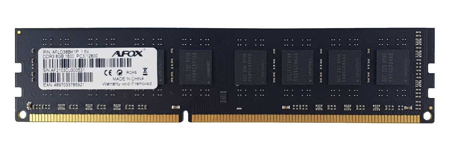 Memoria RAM 1x 8GB Afox NON-ECC UNBUFFERED DDR3 1600MHz PC3-12800 UDIMM | AFLD38BK1P