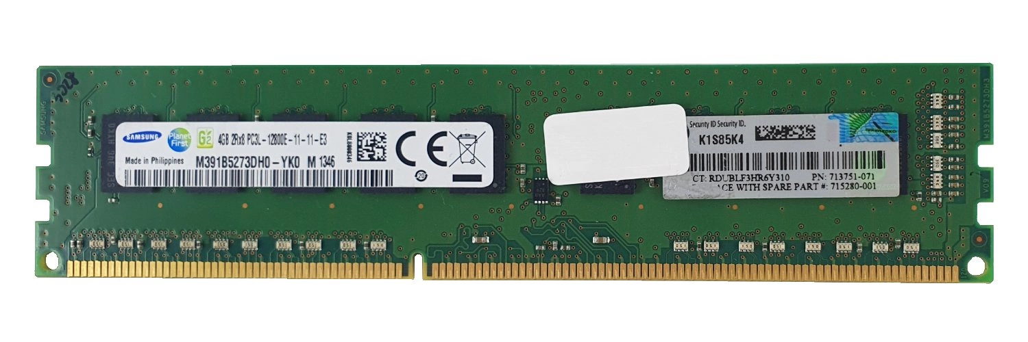 - Kit di memorie RAM 4 GB composto da 1x 4GB 2Rx8 PC3-12800 DDR3 1600MHz 1.35 / 1.5 ECC UNBUFFERED | M391B5273DH0-YK0