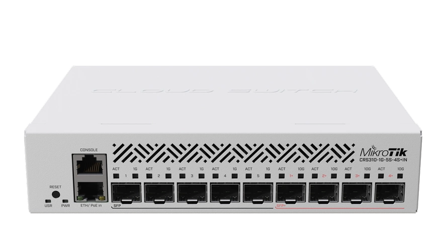 - Switch Mikrotik CRS310-1G-5S-4S+IN 1x 10/100/1000 5x SFP 4x SFP+ 2 (PoE-IN, DC jack)