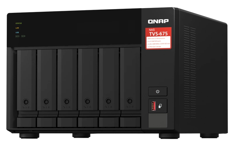 - Server NAS QNAP TVS-675 | CPU: ZhaoXin KX-U6580 RAM: 8GB | 2x 2.5GB RJ-45, 2x USB 3.2 Gen 1 | Garanzia 3 anni