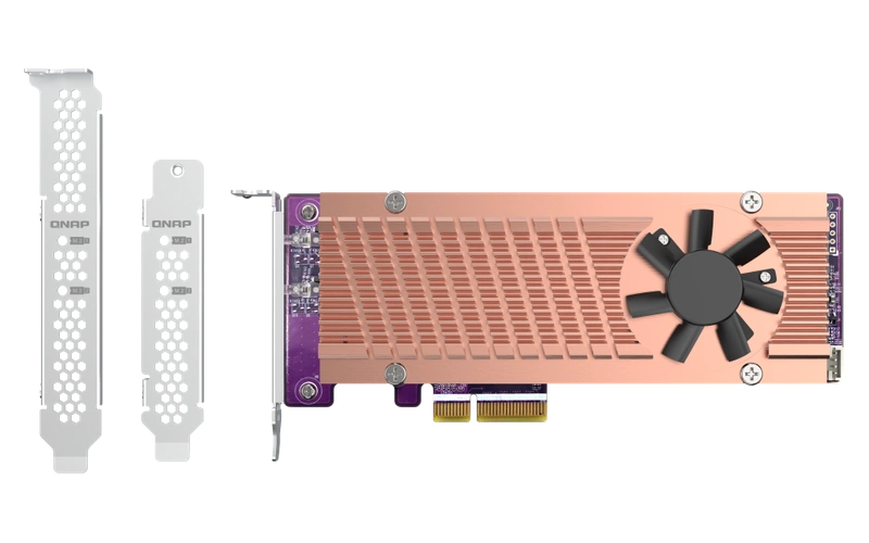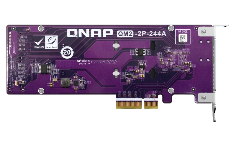 - Aggiungete le unità SSD NVMe al vostro NAS QNAP con il modello QM2-2P-244A per aumentare la capacità di archiviazione e le prestazioni.