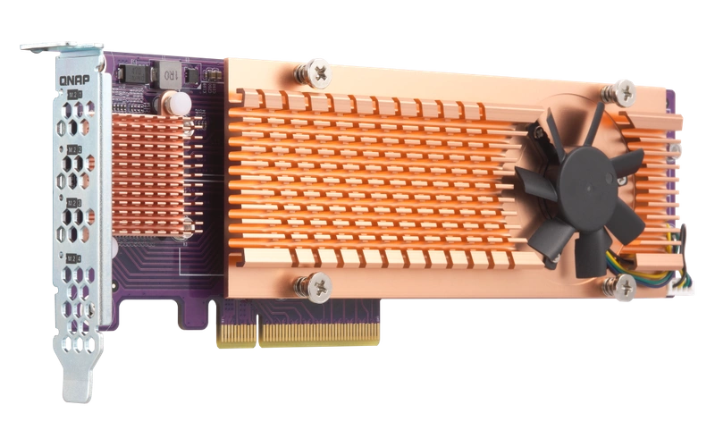 - Aggiungete le unità SSD NVMe al vostro NAS QNAP con il modello QM2-4P-384 per aumentare la capacità di archiviazione e le prestazioni.