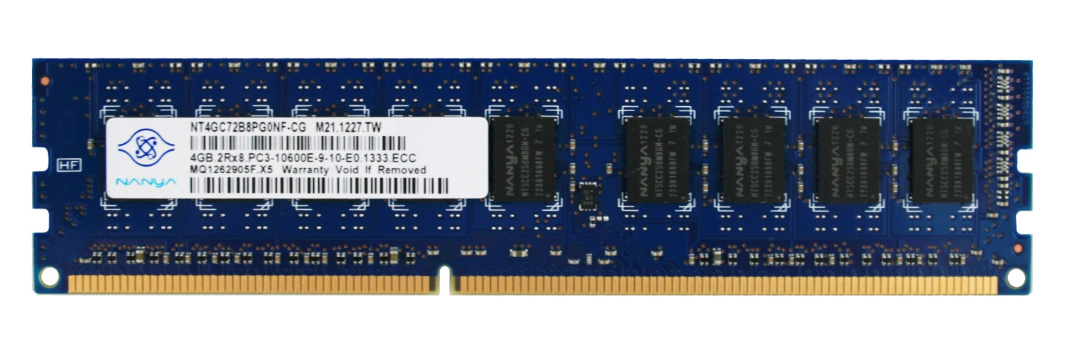 - Kit di memorie RAM 4 GB composto da 1x 4GB 2Rx8 PC3-10600 DDR3 1333MHz 1.5 ECC UNBUFFERED | NT4GC72B8PG0NF-CG