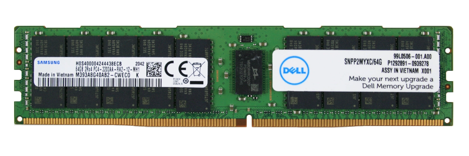 - Kit di memorie RAM 64 GB composto da 1x 64GB 2Rx4 PC4-25600 DDR4 3200MHz 1.2 ECC REGISTERED | M393A8G40AB2-CWE