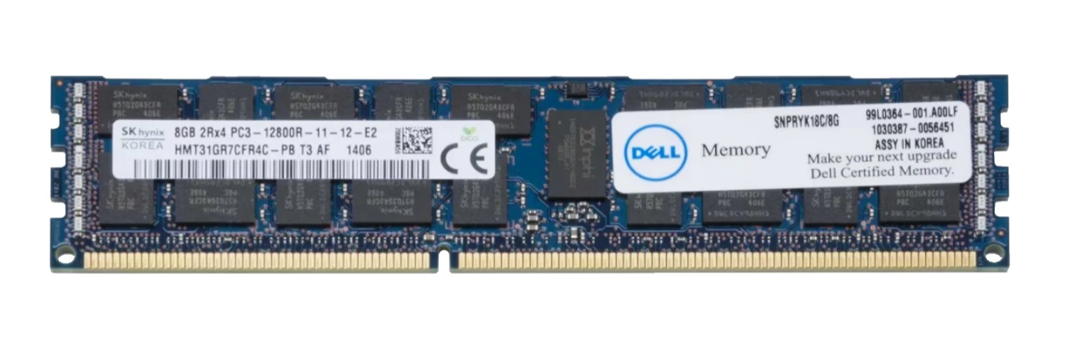 Memoria RAM 1x 8GB DELL PowerEdge & Precision Workstation DDR3 1600MHz ECC REGISTERED DIMM | SNPRYK18C/8G